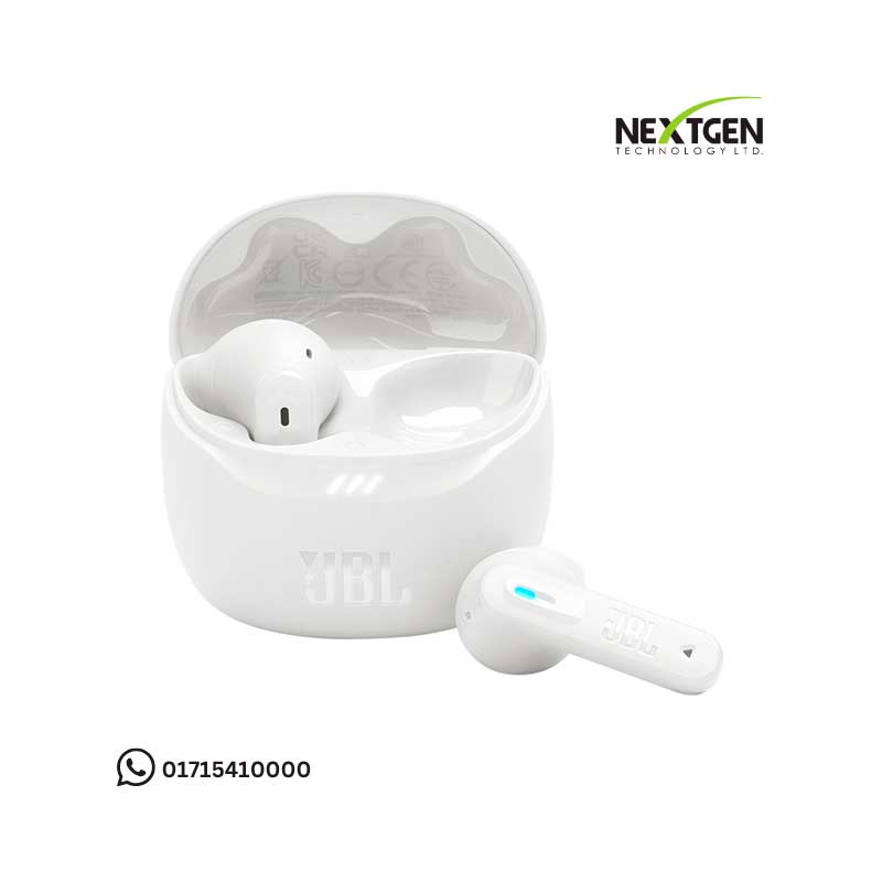 The JBL Tune Flex 2 ANC True Wireless Earbuds provide an immersive and customizable listening experience. They feature JBL Pure Bass Sound and JBL Spatial Sound for better depth and clarity. The 12mm dynamic drivers deliver powerful bass and clear audio across a 20 Hz – 20 kHz frequency range. These JBL Tune Flex 2 Wireless Earbuds come with Adaptive Noise Cancelling (ANC) and Smart Ambient Technology. Users can block out noise or allow ambient sounds with Ambient Aware and TalkThru modes. The six-microphone system includes beamforming outer mics and an inner mic for noise isolation. This ensures clear calls with environmental noise cancellation (ENC) and echo suppression. The JBL Tune Flex 2 TWS Earbuds are durable with an IP54 rating, making them resistant to dust and water splashes. They use Bluetooth 5.3 for a stable wireless connection. They support A2DP V1.4, AVRCP V1.6.2, and HFP V1.8 profiles. These earbuds offer up to 12 hours of playback with ANC off or 8 hours on. With the charging case, they provide a total playtime of up to 48 hours. Each earbud has a 55mAh lithium-ion battery, and the case has a 545mAh battery. A full recharge takes just 2 hours. Each earbud weighs only 4.4g, making them lightweight and comfortable for all-day wear. Users can customize their sound with the JBL Headphones App and Personi-Fi 3.0. Whether listening to music, taking calls, or watching movies, the JBL Tune Flex 2 ANC True Wireless Earbuds deliver great sound, seamless connectivity, and comfort.